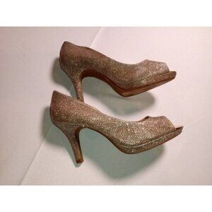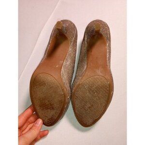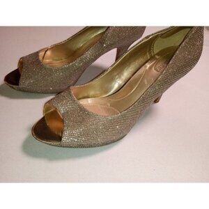 Bandolino B Flexible Size 9 Medium Gold Sparkle 3.5" Heels -MINOR ISSUES
