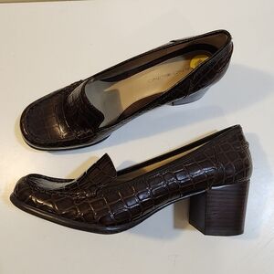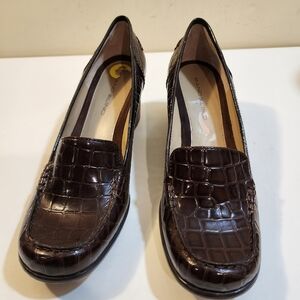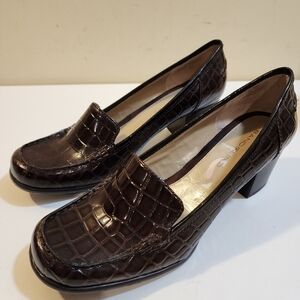 Bandolino BDerna Brown Patent Leather Round Toe Low Block Heels shoes size 9M