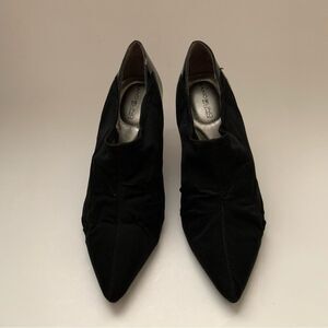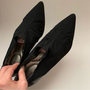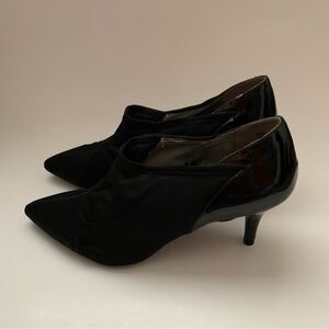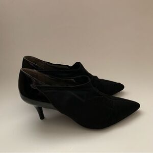 Bandolino Black Ruched Fabric Heel Bootie Pointed Toe Slip On Shoes size 8M