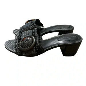 👡✨ Bandolino Black Woven Buckle Heeled Sandals Women’s Size 8.5 Chic‎ ✨👡