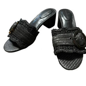👡✨ Bandolino Black Woven Buckle Heeled Sandals Women’s Size 8.5 Chic ✨👡