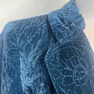 Bandolino Blazer Jacket Women's Size 12 Teal Velvet Floral Embroidered Boho