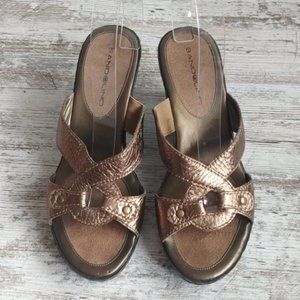Bandolino open back slip on wedges. Metallic bronze leather upper. So comfy and classic. NWOB