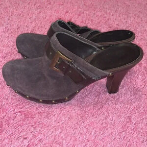 Good condition. Bandolino brown suede clogs with side buckle. Very cute and lightly worn.