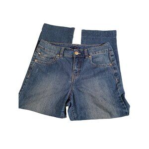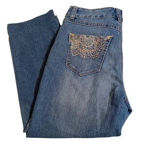 Bandolino Capri Jeans with Rhinestone Accents on Pockets. Home Hemmed Legs