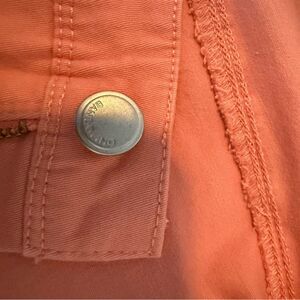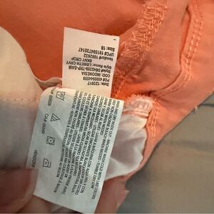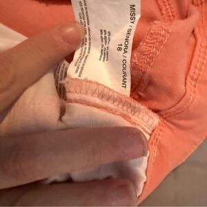 Coral color, size 18, buttons on cuffs, capri, Bandolina brand, measurements in pictures