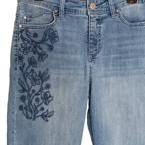 "Amy" capris from Bandolino with gorgeous floral embroidery and ties at legs.