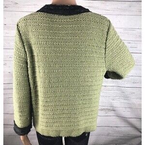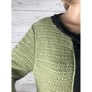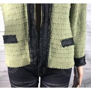Bandolino Cardigan Sweater Olive Green Black Lace Trim