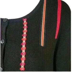 Bandolino Cardigan Sweater Silk Blend, Black w/Striped Design, Size Medium