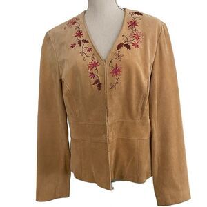 Bandolino Carmel Tan Suede 100% Leather Embroidered Blazer Jacket Size 16