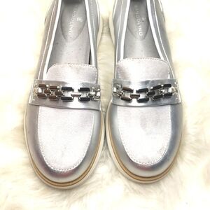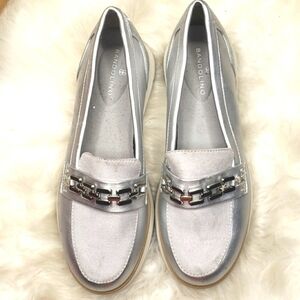 Bandolino Cashe3 Silver Loafers Slip On Sneaker Link Chain Detail Size 6