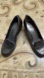 Sophisticated and comfortable Bandolino croc-embossed heels in a dark charcoal gray tone. These classic loafer-style pumps feature a stylish square toe and a stable 2-inch block heel — perfect for work, business meetings, or dressy everyday wear.