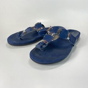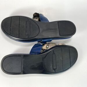 Bandolino Dark Blue Slip-On Flat Sandals 6M Silver Metal Detail Peasant Boho