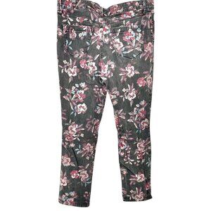 Bandolino Denim Pants Womens 12 Black Floral Print Cotton Blend Slim Fit Stretch