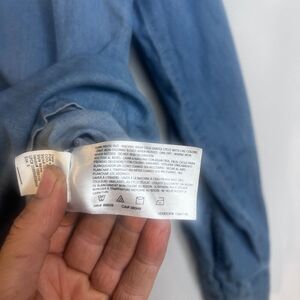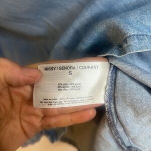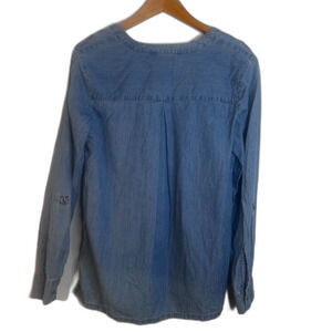 Bandolino Denim Vneck Cotton Blend Beaded Textured Shoulder Size Small Chambray