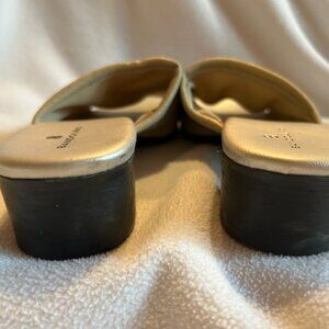 Bandolino Evelia Gold Metallic Stretch Slip-On Slides, Size 8