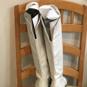 classic white leather boots, wear with long or short dress, skirt, or billowy pants