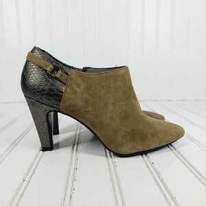 Bandolino Kaeto Suede Pointed Toe Snakeskin Ankle Platform Booties F947