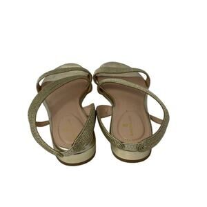 Bandolino Kalinar strappy open-toe wedge sandals in a shimmery gold finish. Size 10M. Worn only a handful of times—light signs of wear but excellent overall condition. The soft metallic shimmer and comfortable wedge design make these ideal for weddings, vacations, brunch, and spring/summer events.
