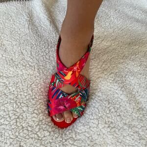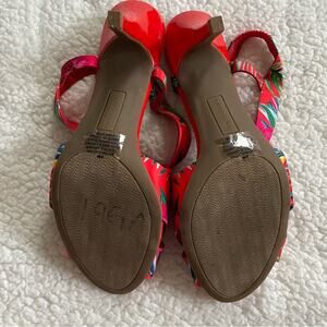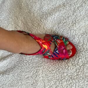 Bandolino Molvena Slingback Heeled Sandals red w/a multi-color tropical floral 9