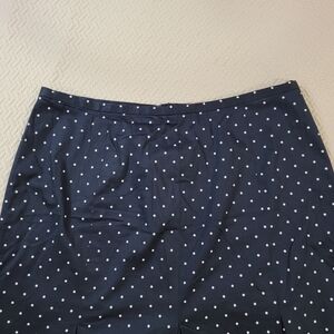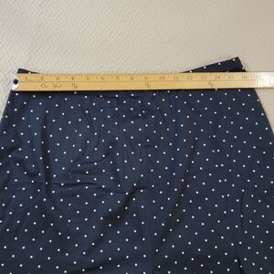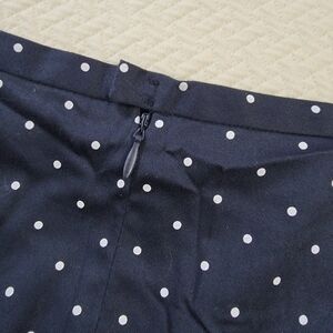 Chic navy blue skirt with white polka dots. Got and flare with pleats. Zipper closure. Cotton blend with stretch.