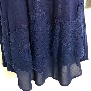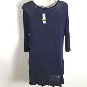 Bandolino Navy Blue Tunic Top with Embroidered Accents, Size Medium, NWT
