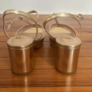 Bandolino Paolar Classic Metallic Gold Strappy Platform Block Heels - Size 8