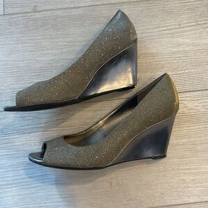 Bandolino Peep Toe Wedge Metallic Color size 7 1/2