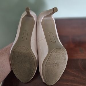 Like New! These sophisticated pink cream heels by Bandolino feature a timeless peep-toe design, perfect for formal occasions. Crafted with a smooth finish, they offer a versatile style that complements a variety of outfits. The medium to high heel height, 3.25", adds elegance and practicality to your wardrobe.