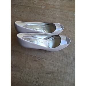 Bandolino “RAINAA” PU Patent Leather Peep Toe Slip On 3.5” High Heel Pumps 9 M