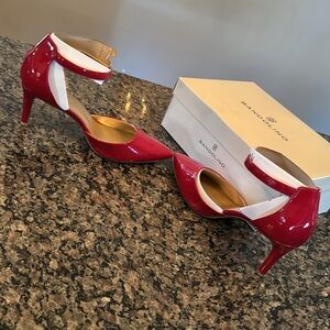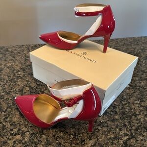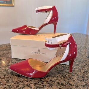 Bandolino Red 3 inch ankle strap point toe heels NIB 9.5