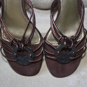 Bandolino Brown Sandal Size 8 Medium. New, never worn. Soft Metalic brown straps. Cushioned sole.