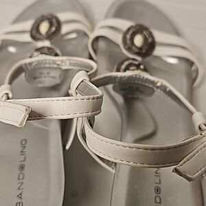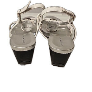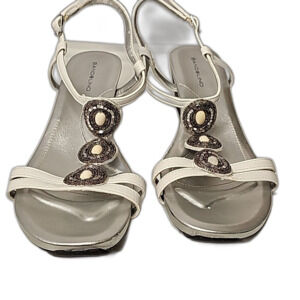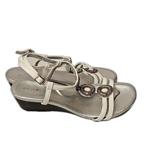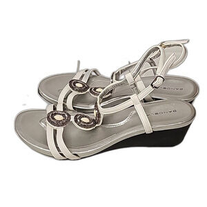Bandolino Sandals Wedges White with Silver Embellishments Black Sole Sz 9.5