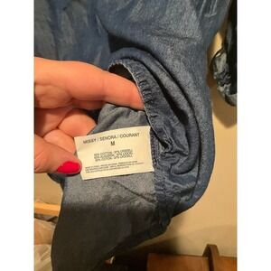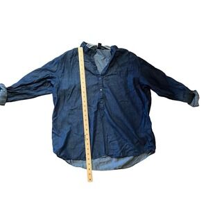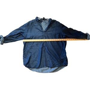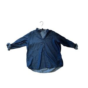 Bandolino Shirt Women's Size M Blue Denim Stand-Up Collar Long Sleeve Cotton