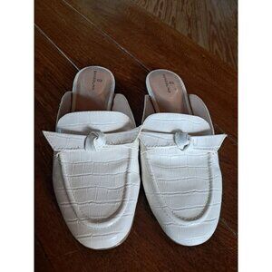 Bandolino Shoes Womens 8 Dumia Mule White Faux Leather Slip On Closed Toe Flats