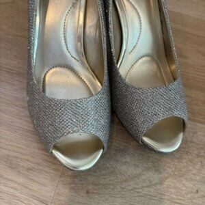 Bandolino Silver Peep Toe Heel Jeweled Size 6.5