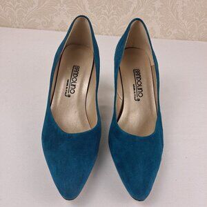 Bandolino Size 7.5M Turquoise Suede Heels Pointed Toe Made In Italy