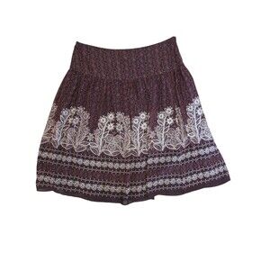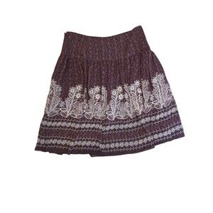 Bandolino Skirt 10 Brown A-Line Drop Waist Short Chiffon Embroidered BOHO Hippie