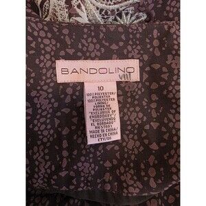 The Bandolino Skirt in size 10 is a stylish A-line skirt with a drop waist design, perfect for a bohemian or hippie look. Made from polyester chiffon fabric with floral embroidery accents, this brown skirt is lined and features a short length, making it a trendy addition to any woman's wardrobe. The Bandolino brand is known for quality and style, making this skirt a versatile and eye-catching piece for any casual or dressed-up outfit.