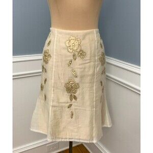 Bandolino Skirt Womens 8 Midi A-Line Flare Embroidered Floral Sheer Lined