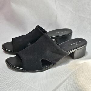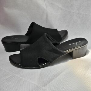 Slip on comfy stretchy fabric 1.5in heel sandals with cutouts on sides. Size 7.5
