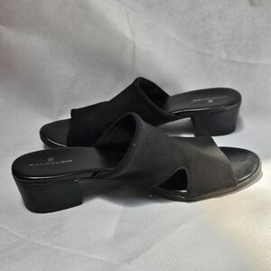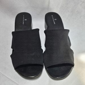 Bandolino Stretch Fabric Open Toe Chunky Heel Slip On Sandals Size 7.5
