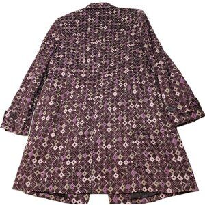 Bandolino Stretch Trench Coat Purple/Brown Mid Century Modern Vintage Pattern w/Padded Shoulders