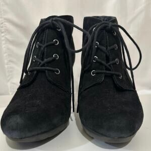 Bandolino Black Suede platform ankle chunky heel boots. Size 7M