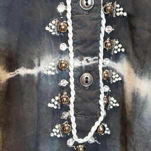 Bandolino Sz XXL Black White Ombre Tie-Dye Embellished Viscose Plus Blouse 524