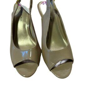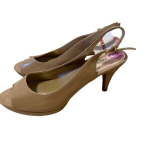 Bandolino Tan Patent Peep Toe Sling Back Heels - 8.5