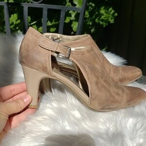 Bandolino Wardell Taupe Suede cutout bootie Heels