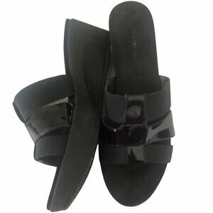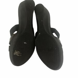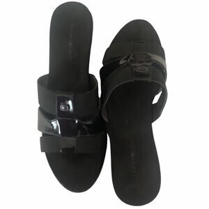 Bandolino Women Sandal Shoes 8.5 Black Slide In Wedge 3 Strap Backless Office