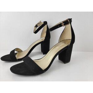 Bandolino Womens Armory Block Heel Suede Dress Sandals Black Shimmer Size 9M NIB