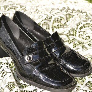 Bandolino Women's Black Crocodile Loafer Size 7.5 Block Heel